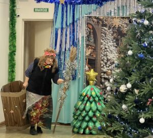 К нам в гости пришли не только Дед Мороз и Снегурочка, но и сказочные персонажи, которые помогали создать незабываемую атмосферу — Баба Яга и Леший.